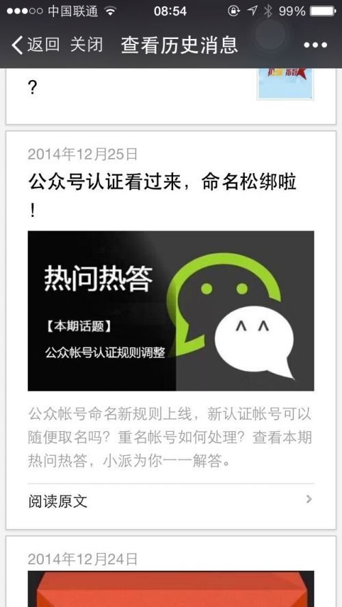 微信在2014年的最后一波产品调整,先是小范围开放文章评论功能,接着又在年关之前放开微信红包接口,而其中备受关注的是,腾讯旗下公众号“微信派”发布的《公众号认证看过来,命名松绑啦》,引起众多运营者关注。此次认证新规主要为两条,一是微信认证命名即使没有商标,也无需再加公司名称或简称;二是新注册公众账号名称将不能与取得微信认证的账号重名。