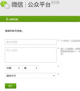 选择省市后提交。然后我们就可以前往微信公众平台了。