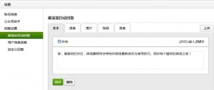 “自动回复”是用户第一次进入我们微信的对话框所呈现的欢迎语,“用户消息回复”是用户发送消息给我们微信后将得到的回复。