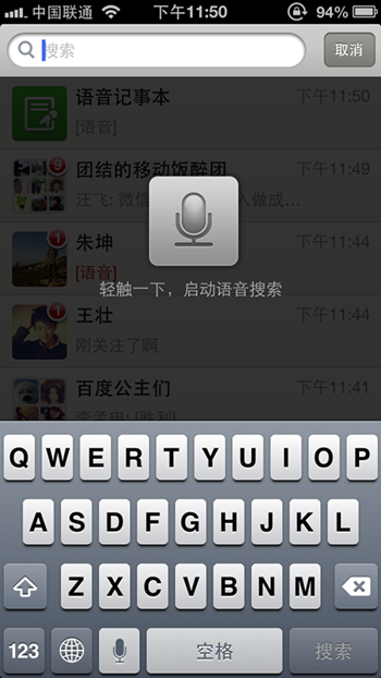之前只能语音搜索联系人,现在已经可以语音搜索消息内容了,高级是高级了,但是还没有解决语音消息的索引问题,诚然,语音消息更适合用语音来搜索语音。微信加油吧,信息的导入导出已经提供了,信息的管理和检索,也是非常重要的。这样才能让用户真正把微信当成是一个替代短信的,靠谱的数据交换终端。