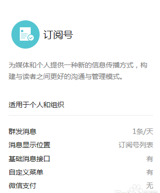 现在我们每天收到的消息推送一般都是订阅号,但是如果要特殊接口开发一些功能比如支付,那么就要选择服务号了。最本质的区别:可扩展性:服务号>订阅号;推送信息数量:订阅号>服务号。根据需要进行选择。一般服务号有很强大的数据库管理系统,一周能够推送一次消息,订阅号每天可以推送一次。看你自己需求。